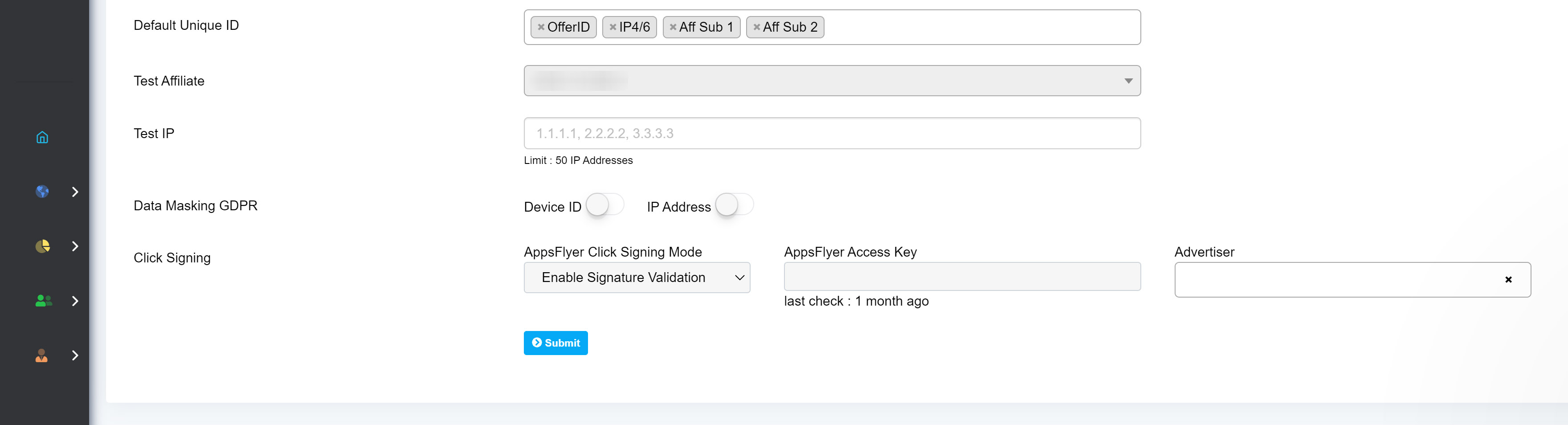 - Enable Signature Validation - Appsflyer will validate each click redirection.
